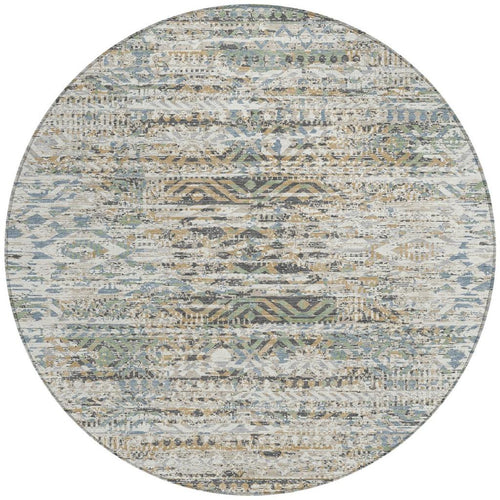 8' Ivory And Beige Round Moroccan Washable Indoor Outdoor Area Rug